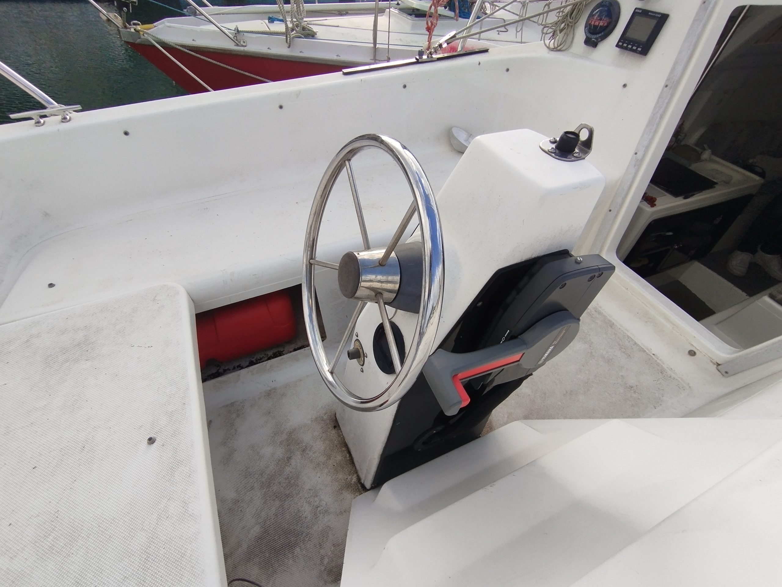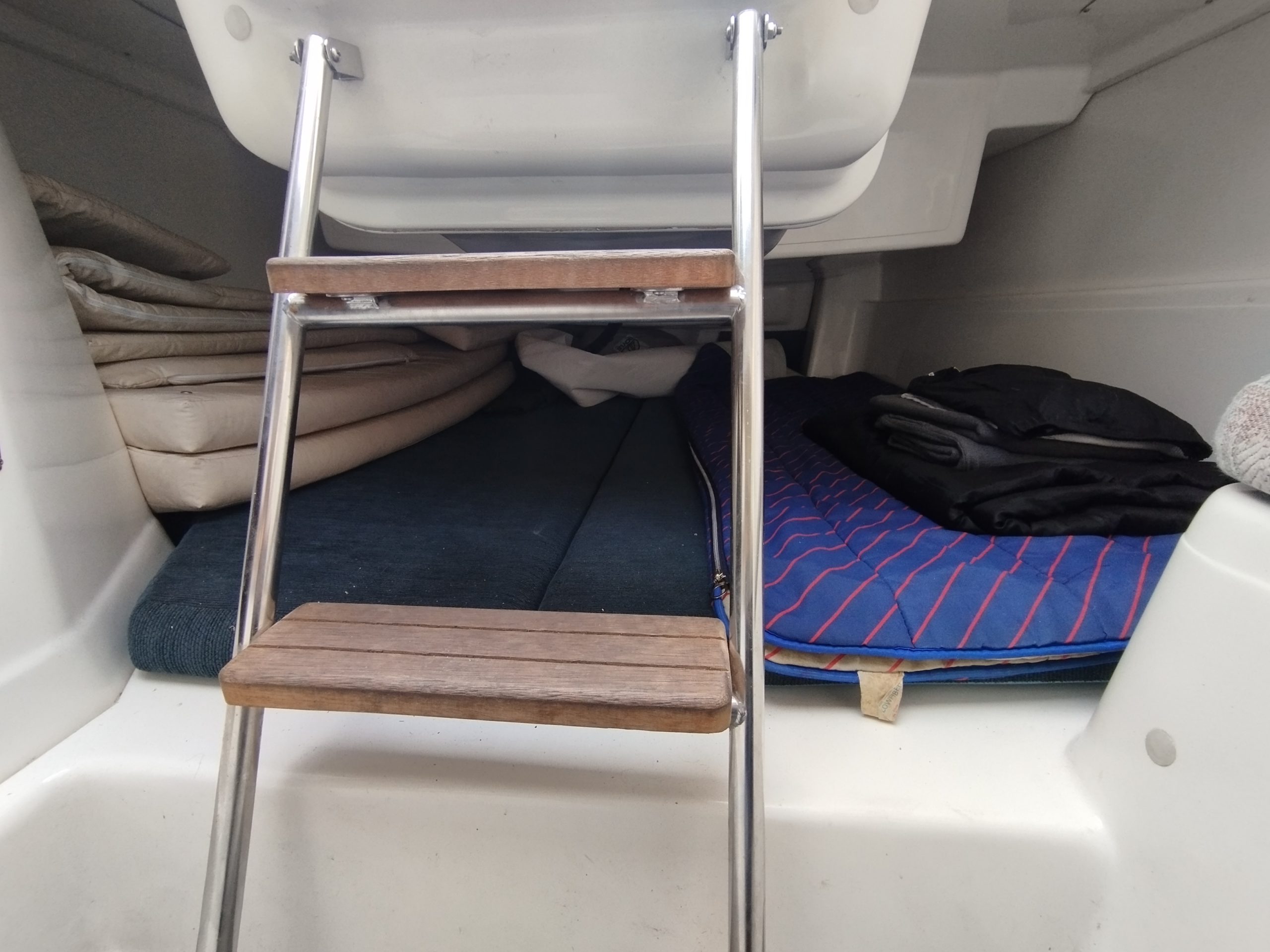 Une échelle de bain inox dans la jupe arrière