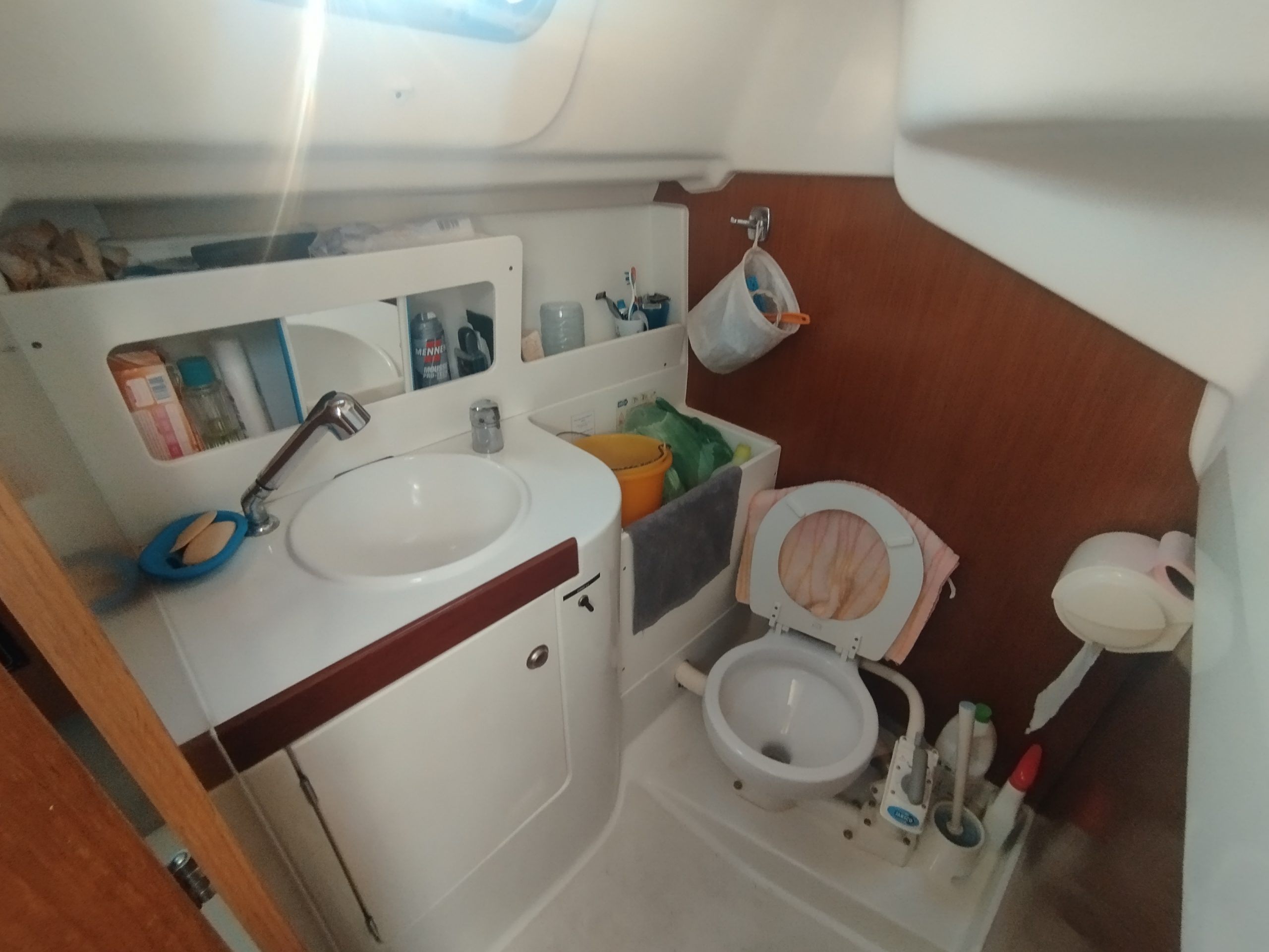 WC marin avec lavabo et douchette sur tribord